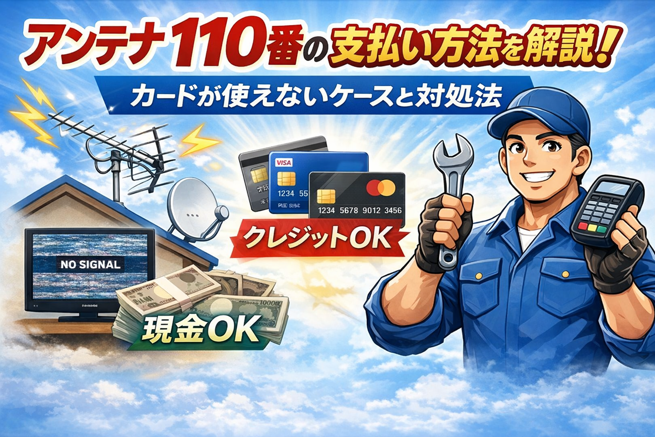 アンテナ110番の支払い方法は、現金払いとクレジットカード払いが案内されているものの、実際の対応は加盟店やエリア、現場状況によって異なる場合があります。